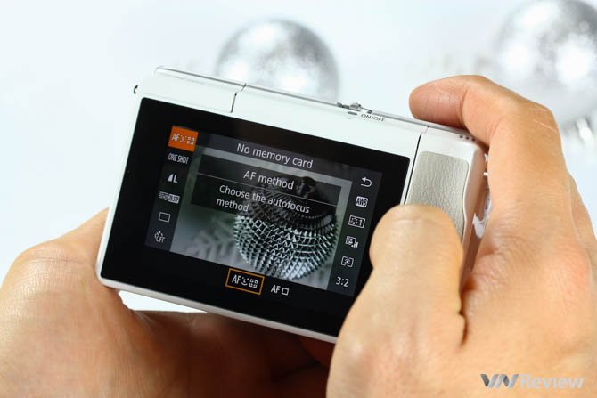 Tuy nhiên, thiết kế quá nhỏ gọn lại khiến việc cầm nắm, điều chỉnh thông số trên M10 không tiện. Phần bên phải ở mặt trước phẳng, không có báng cầm lồi ra nên khó cầm chắc. Máy cũng chỉ có một vòng xoay ở nút chụp, 5 nút bấm ở mặt sau nên việc chỉnh thông số, chế độ chụp phần lớn phụ thuộc vào màn hình cảm ứng 3 inch làm thao tác chậm đi khá nhiều nếu chưa quen; đôi lúc bạn phải bấm vài lần mới có thể thực hiện điều chỉnh mong muốn.